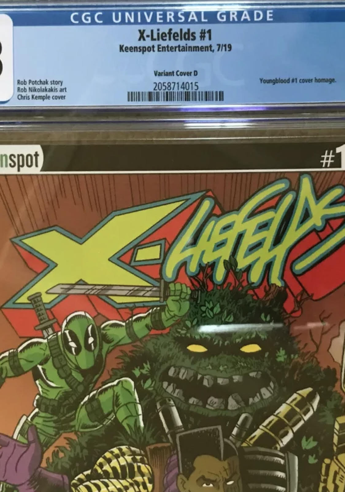- CGC lists this as an homage to Youngblood (1992) #1. I believe that this is an error. All of the other homage covers for X-Liefelds (2019) #1 are from Marvel books exclusively. I believe that this is actually a homage to X-Force (1991) #8.