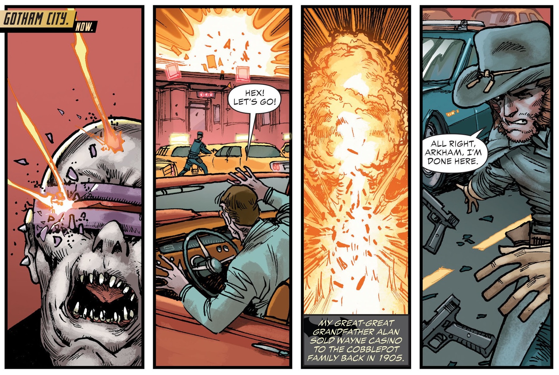 - Jonah Hex arrives in modern Gotham City and has a run-in with the Mutant Gang resulting in his getting locked in Arkham.