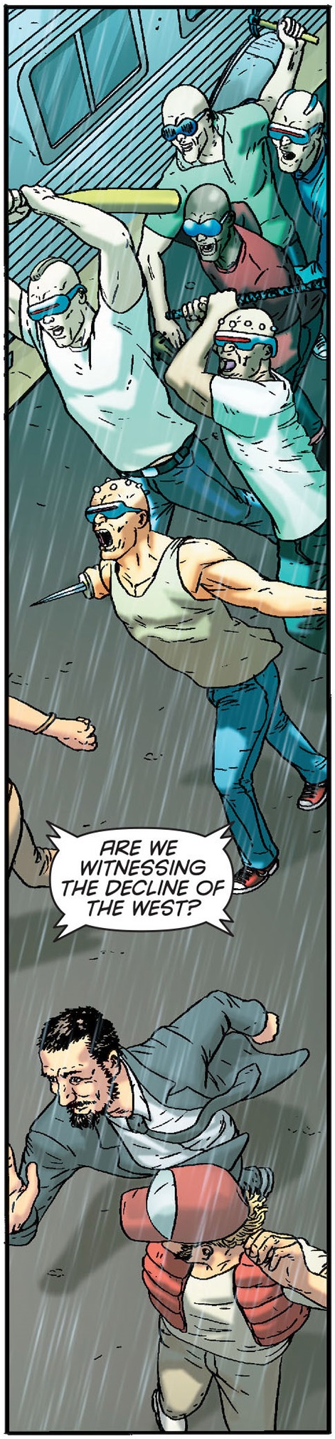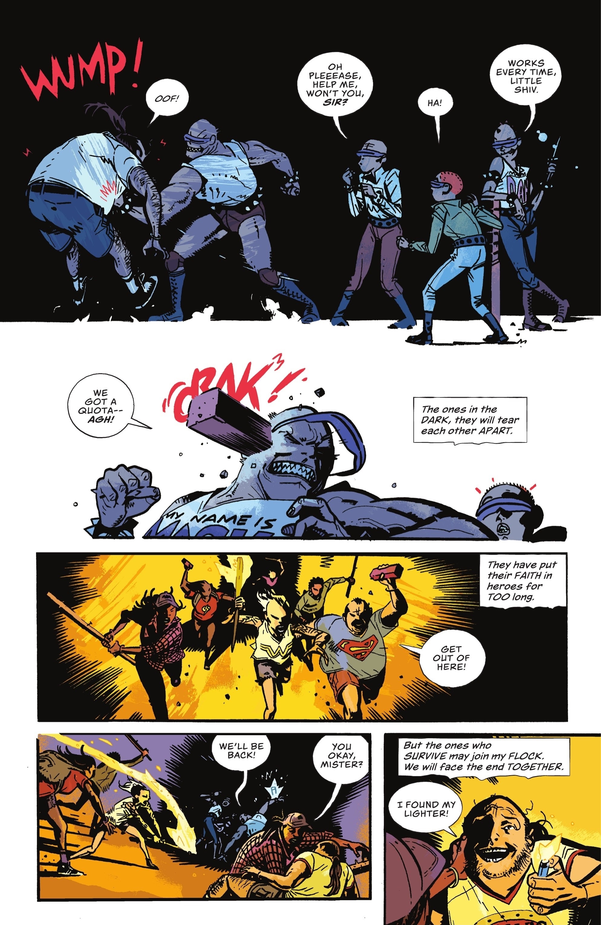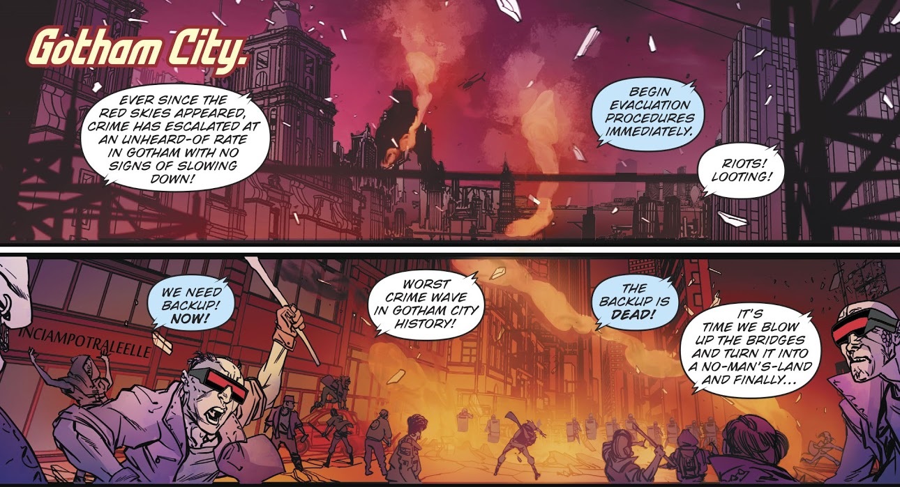 - Mutant Gang members are seen rioting in Gotham.