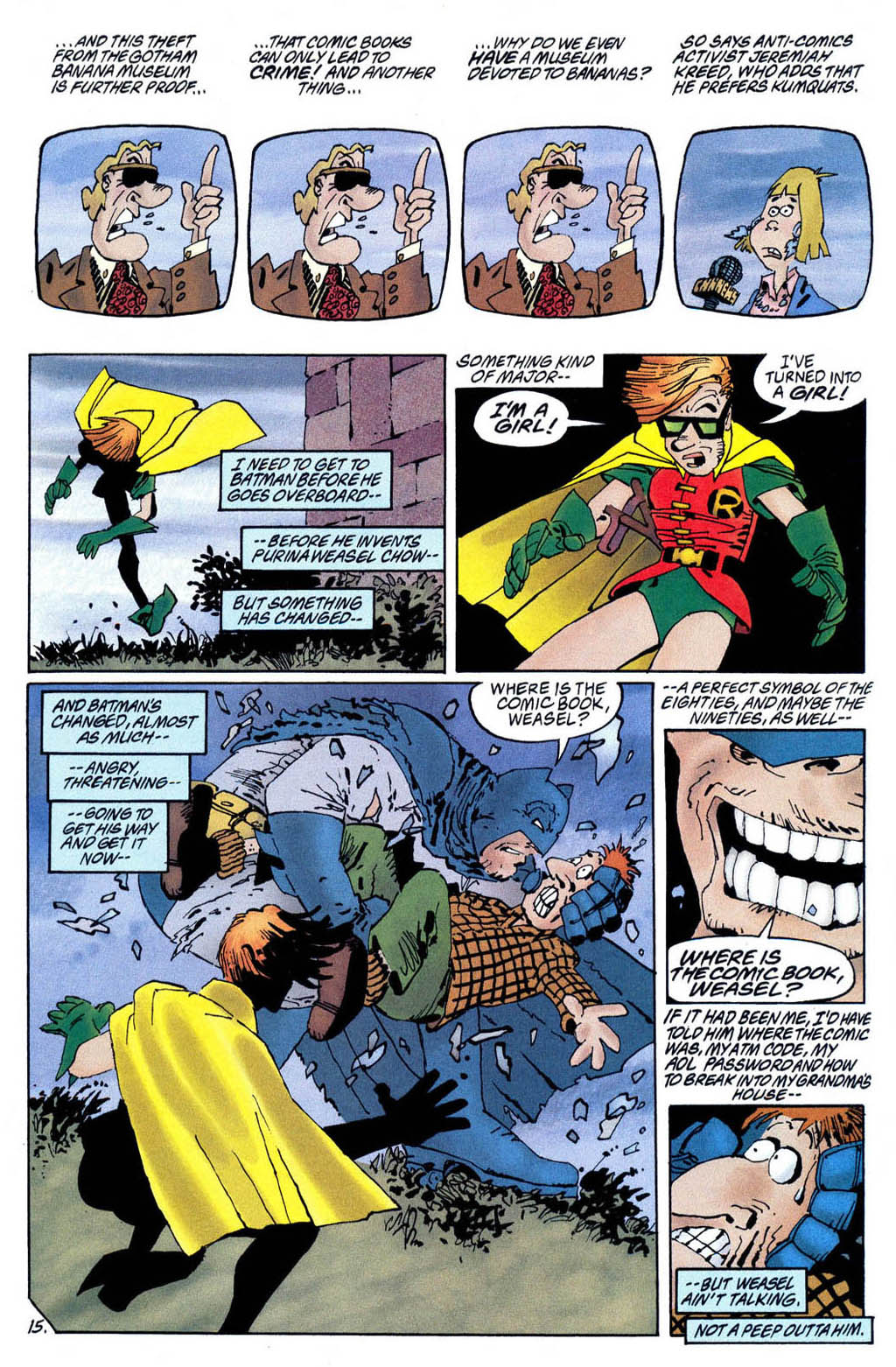 - A story page is a direct reference to Superman from ‘The Dark Knight Returns’.