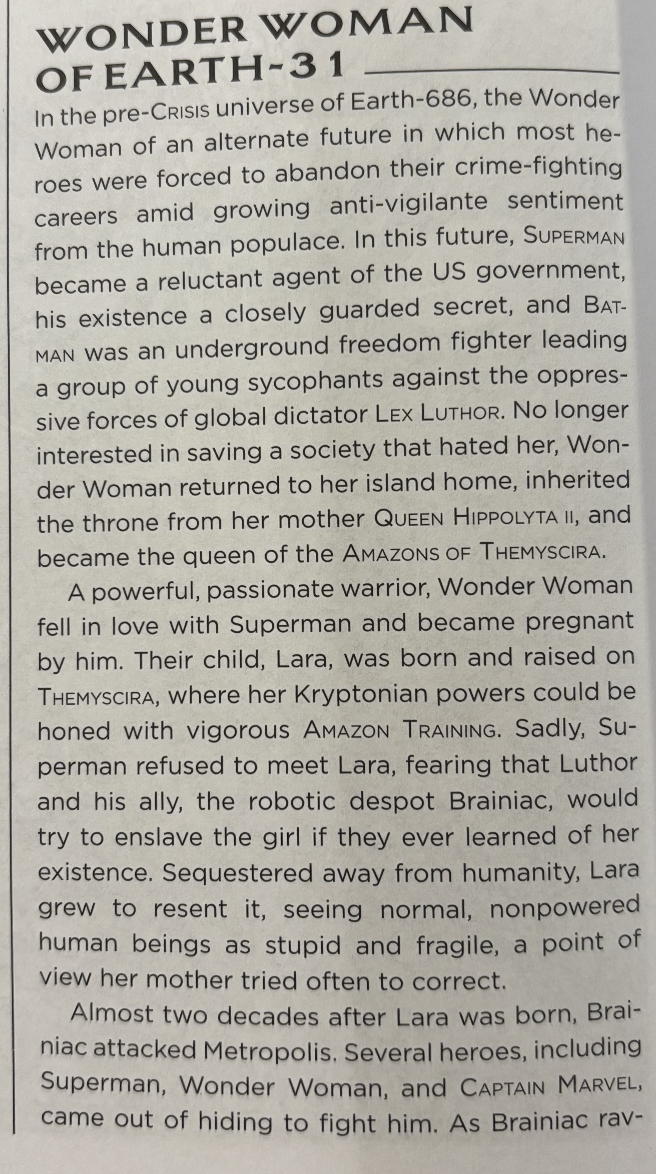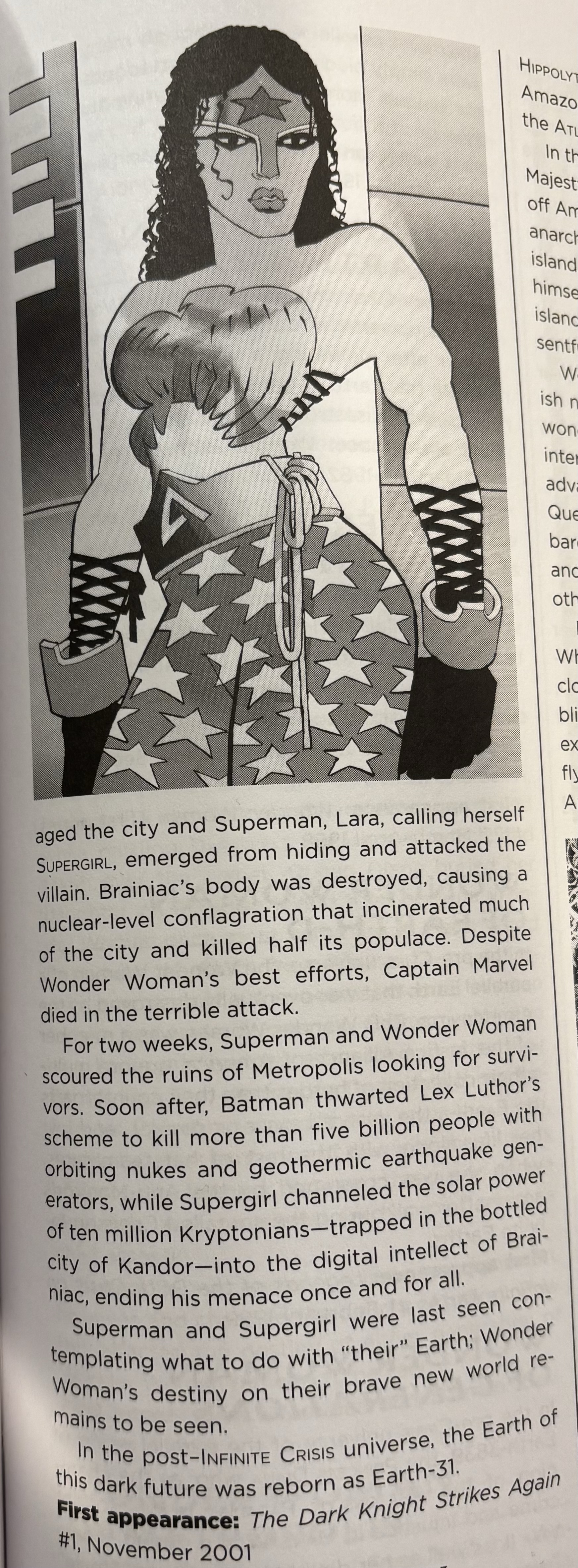 - page 464: entry for “Wonder Woman of Earth-31” says pre-Crisis the TDK Universe was “Earth-686”. “Post-Infinite Crisis” it was “reborn as Earth-31”.
