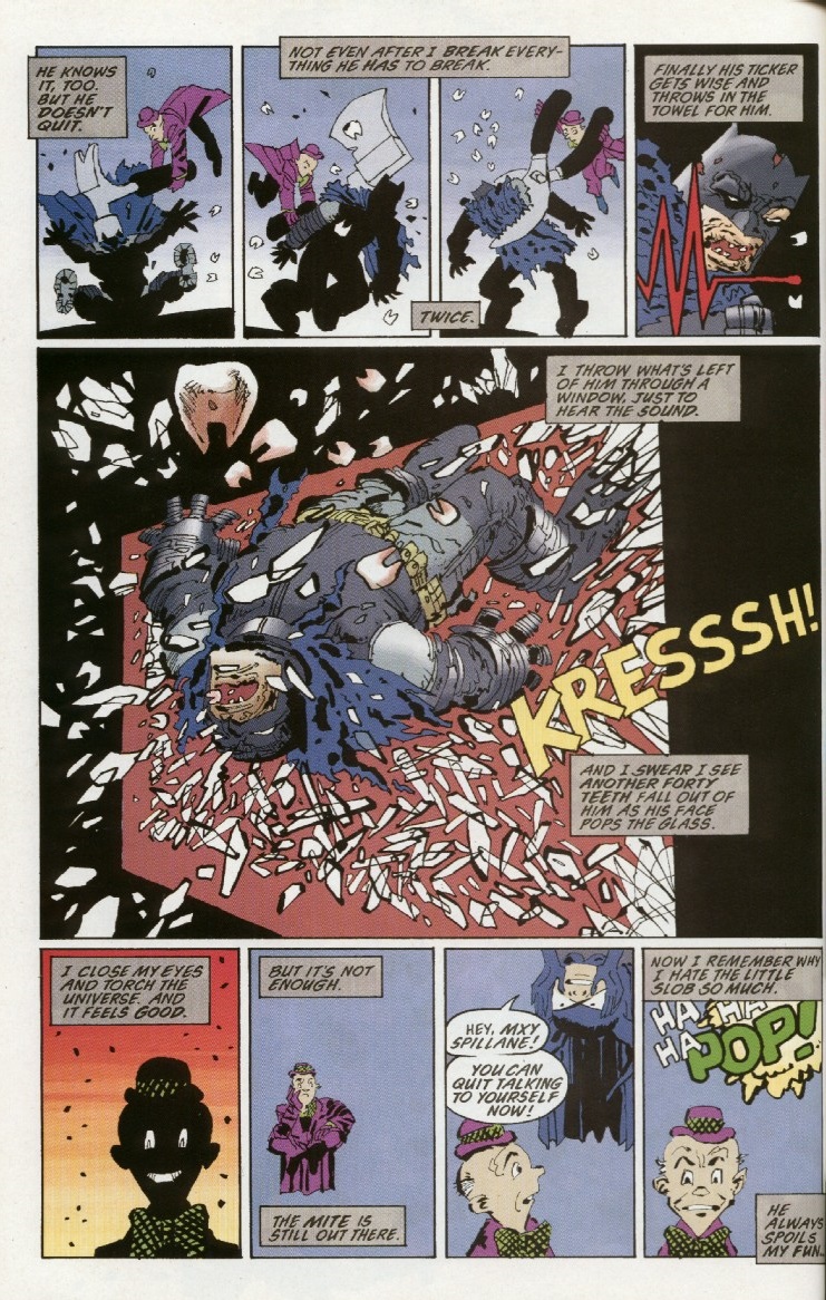 - In an interview with Frank Miller from Hero Illustrated #10 (April 1994), he said, “As I was trying to make up my mind whether to do it or not, I wanted to see what I could do with it that would mean I could do a good job. I realized that in ‘Batman: Year One’ I had done sort of the young bungler on his way to becoming Batman, and in ‘Dark Knight’, I had done the basically over-the-hill superhero who still had so much left in him he could be powerful but in constant pain, and a little out of touch with the times. I realized that this was an opportunity for me to do Batman, in his early 30s, where he’d be like Michael Jordan last year. You’d see him at his absolute peak, where he simply doesn’t make false moves.”