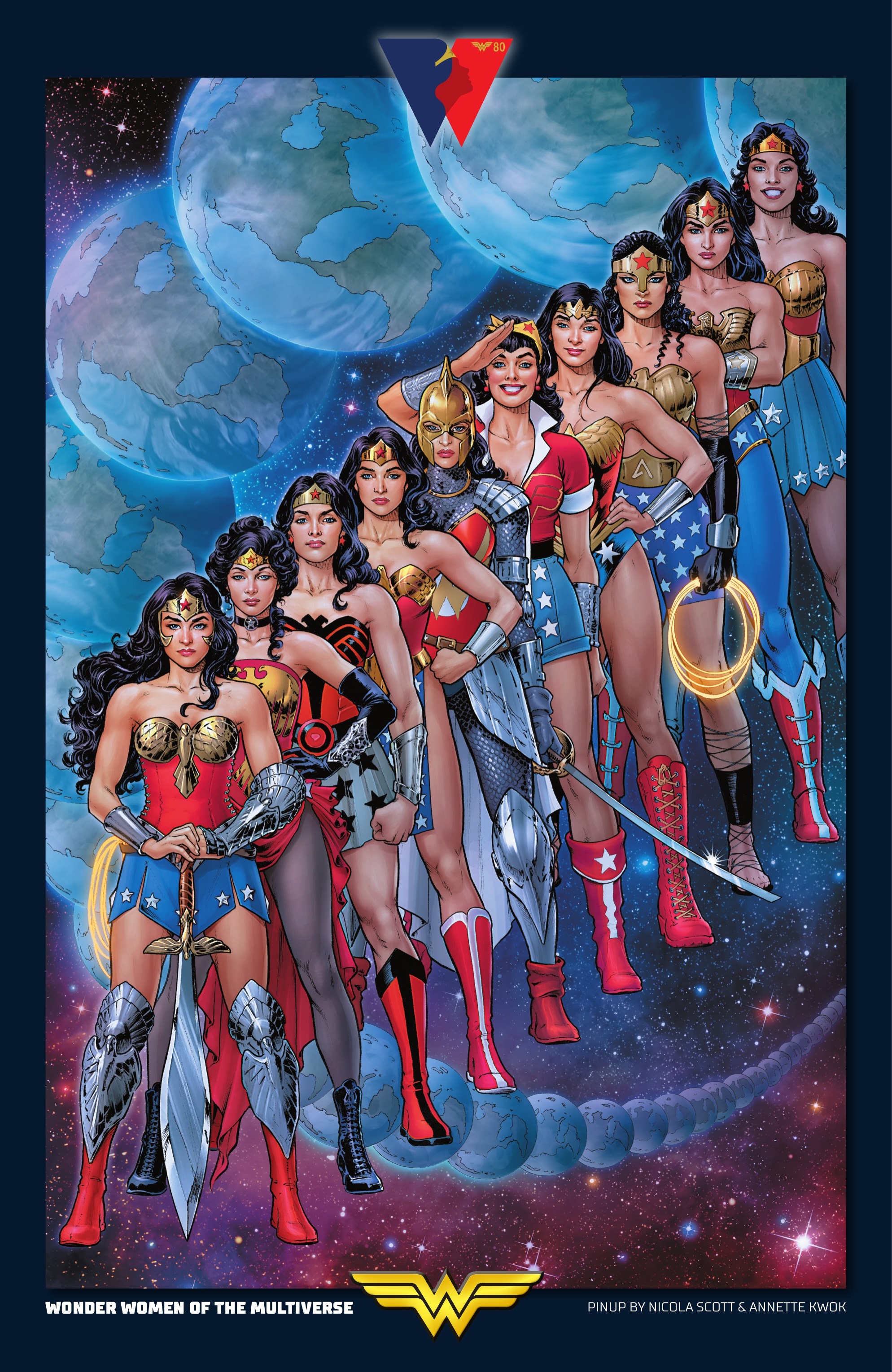 - The pin-up “Wonder Women of the Multiverse” includes Wonder Woman from the TDK Universe. (She is third from the right.)